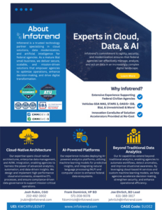 We build technology solutions for federal agencies that address the challenges associated with big data, custom application development, emerging technologies and training. Our Agile, innovative approach and experience as a prime contractor managing a broad portfolio of government projects allow us to rapidly understand and solve the most complex issues in ways that reduce risk and increase efficiency.